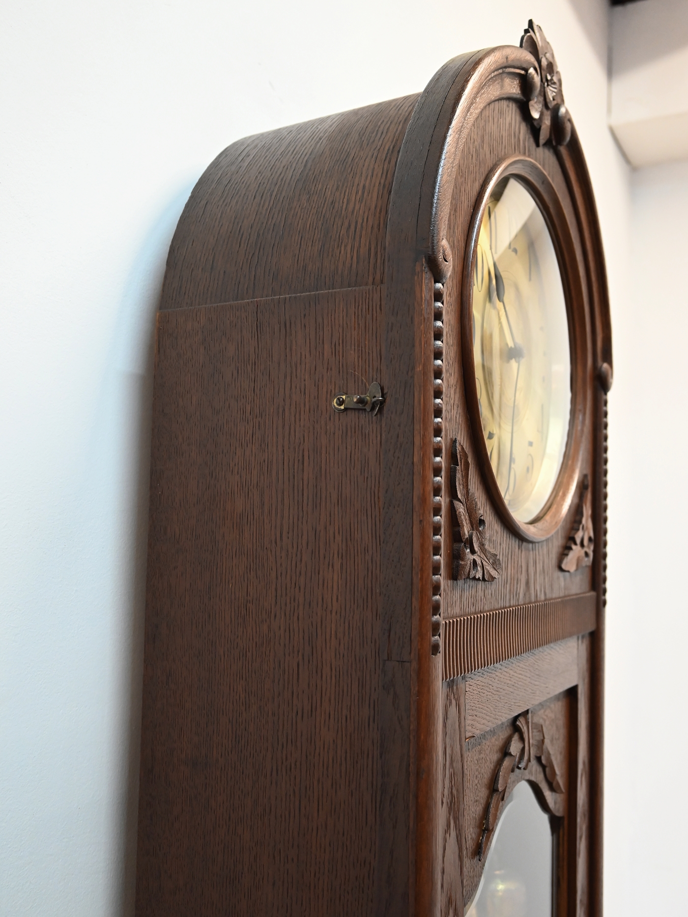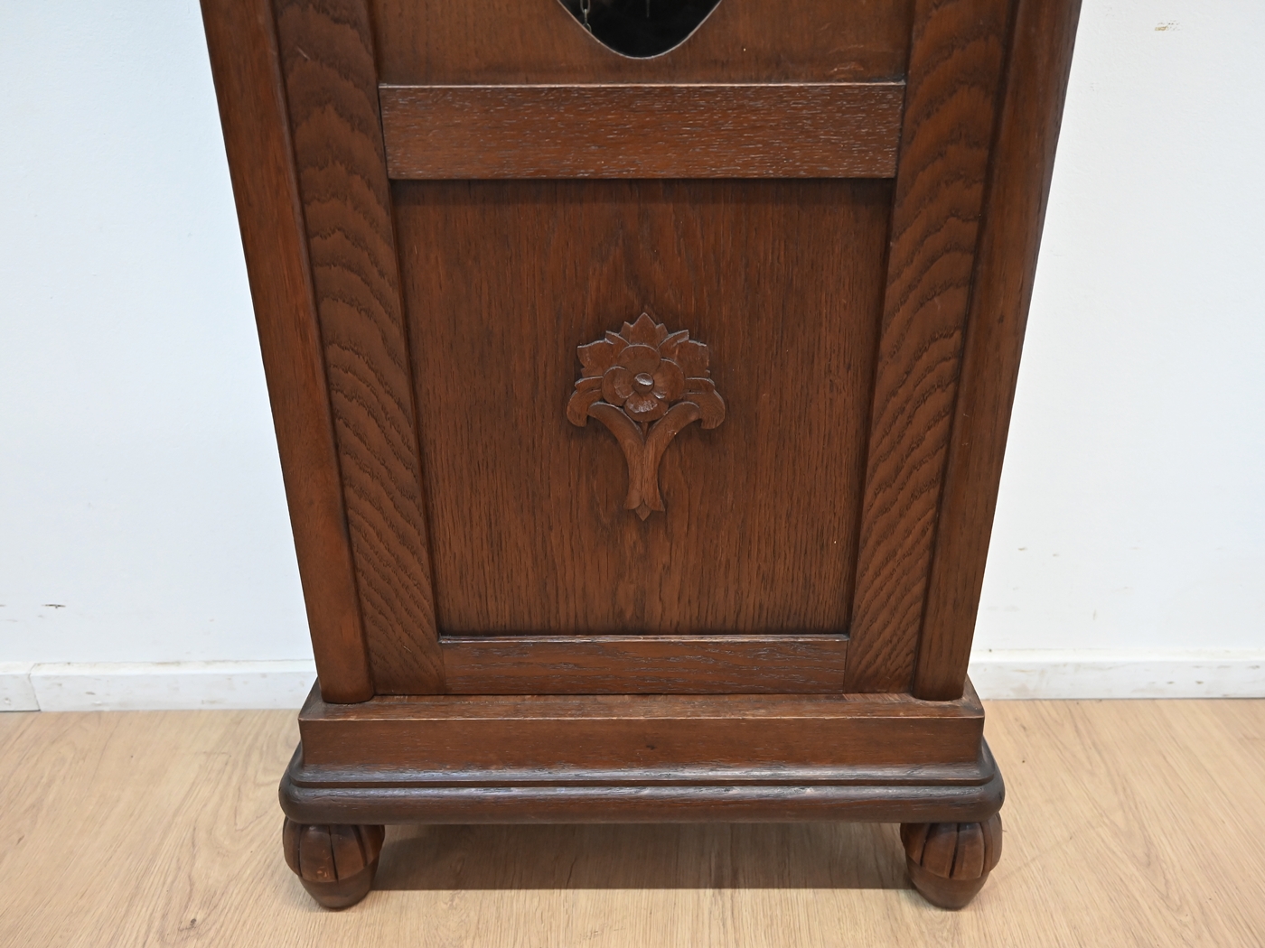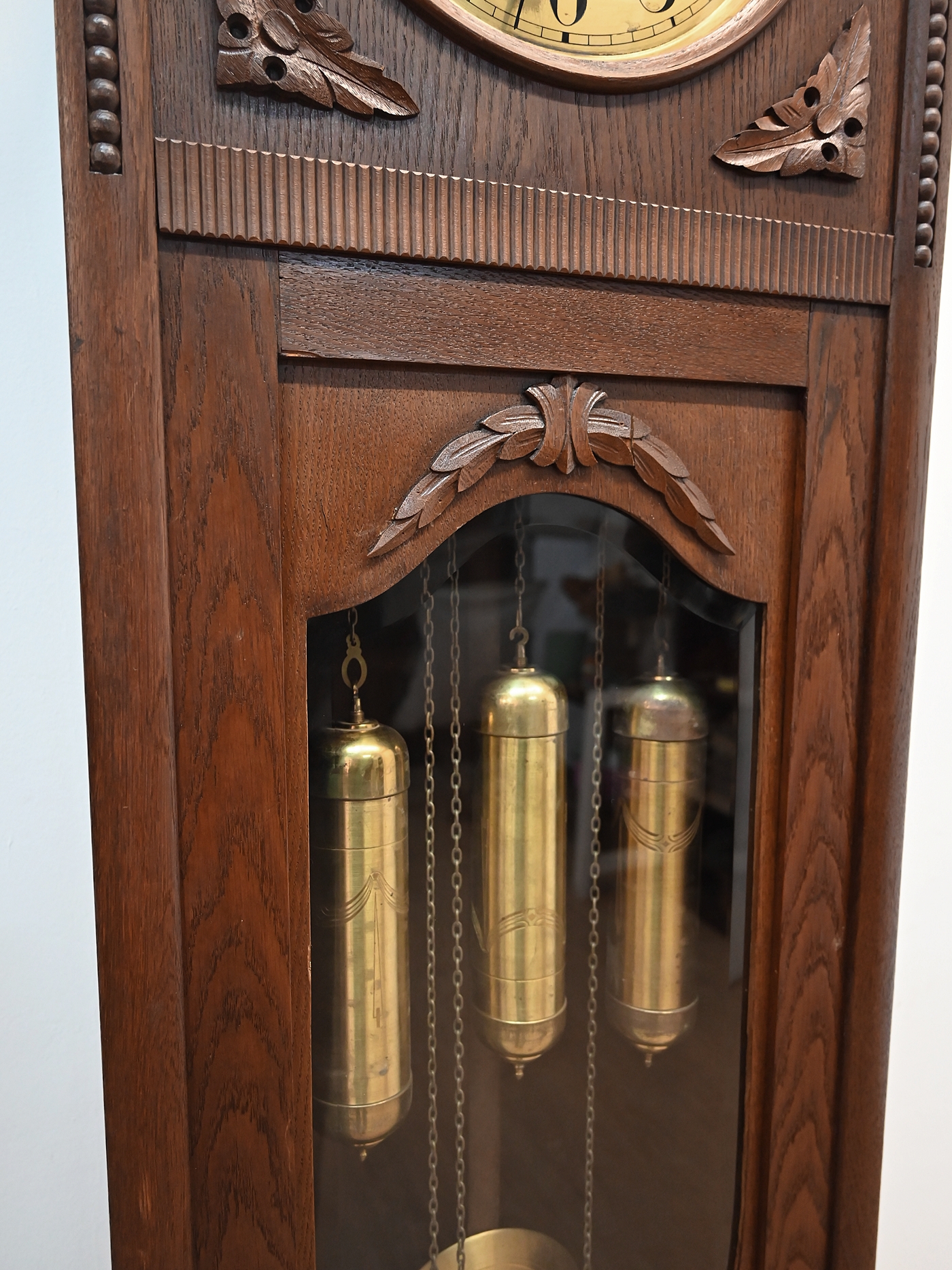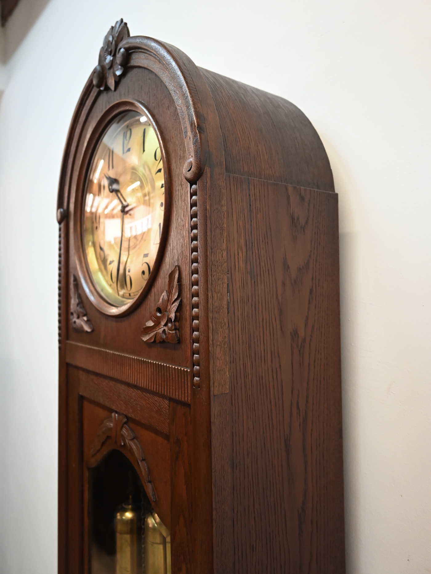 Stan bardzo dobry. Mebel przygotowany do użytkowania. Odświeżone zostały powierzchnie zewnętrzne jak i środek mebla. Mebel ma już swoje lata i ślady minionego czasu, które nie wpływają na jego odbiór estetyczny, są świadectwem autentyczności mebla. Zegar od razu można wstawić do mieszkania.