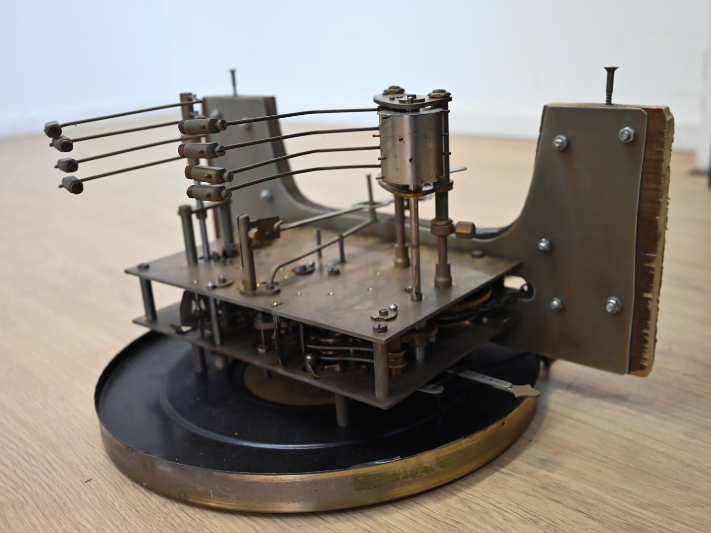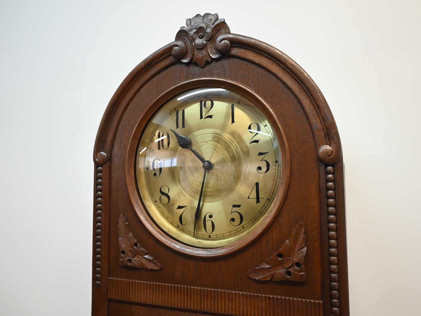 Mechanizm po przeglądzie zegarmistrzowskim, sprawny. Szyba fazowana. Szybka na tarczy wypukła. Średnica tarczy 30cm. Ze względu na delikatność mechanizmu preferowany odbiór własny lub nasz transport. Nie dajemy gwarancji na mechanizm.