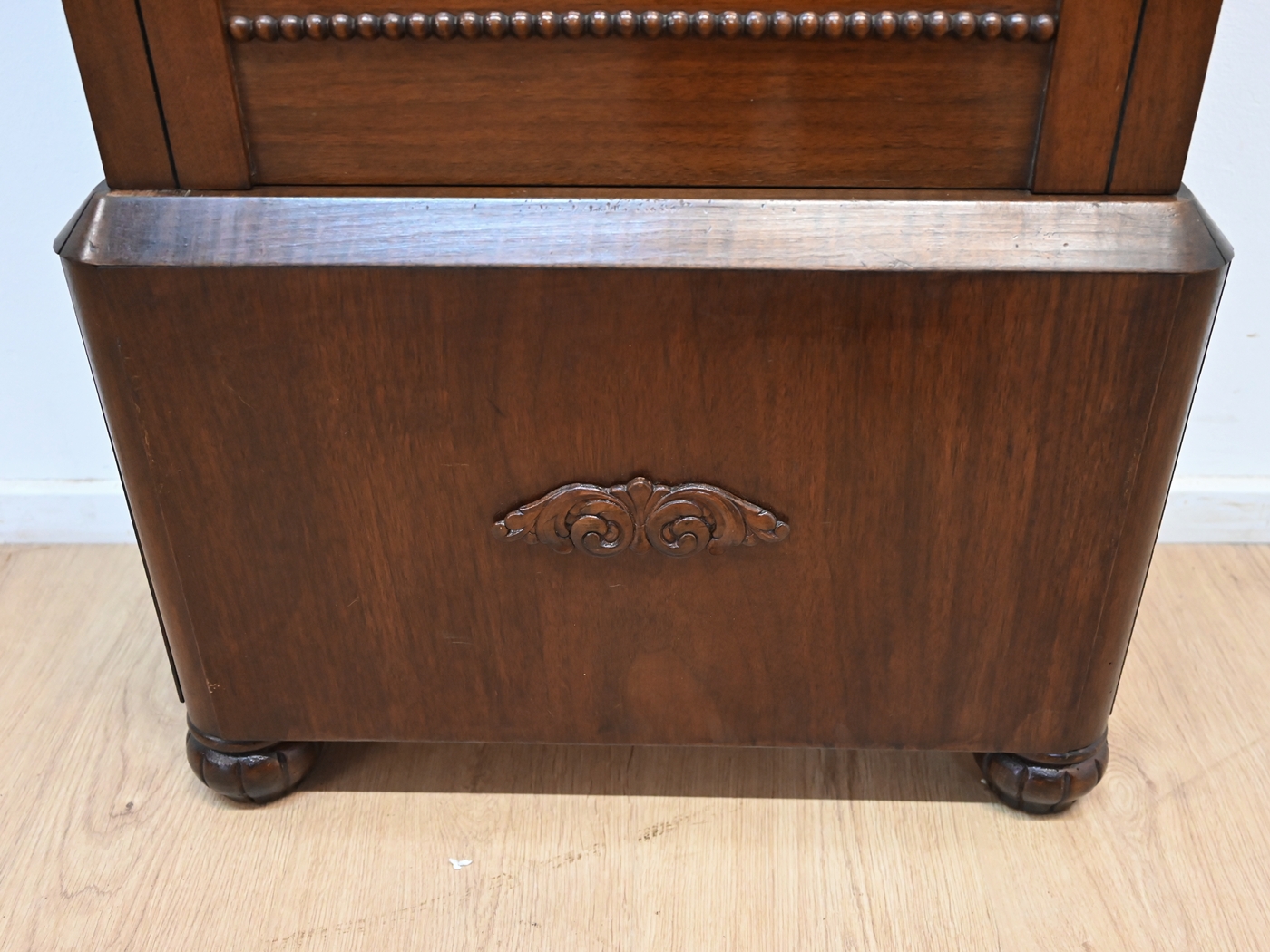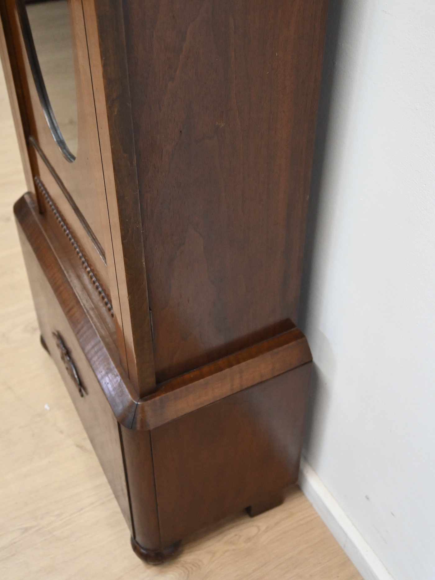 Stan dobry, mebel ma już swoje lata i widoczne ślady minionego czasu. Mebel nadaje się do użytkowania, można go wstawić do mieszkania, lub do ewentualnej renowacji. Mebel posiada widoczne skazy, ryski, otarcia, odpryski.
